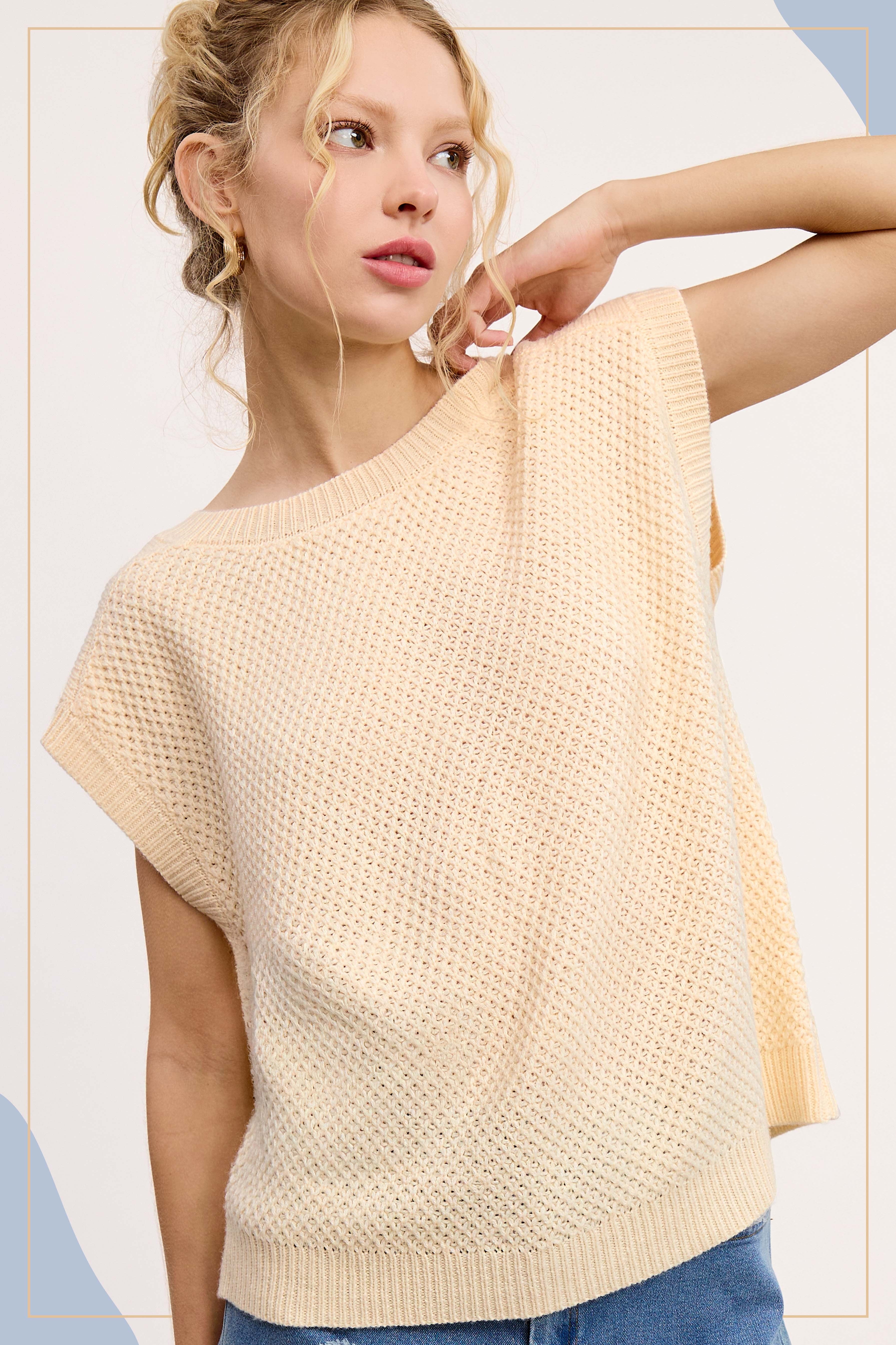Elevate your style with our Soy Latte Sweater Vest Top. A must-have for any season, its sleek silhouette is perfect for layering or wearing on its own. Made from luxuriously soft fabric, it offers all-day comfort. Versatile and timeless, it's a must-have addition to any wardrobe. Dress it up or down for any occasion!