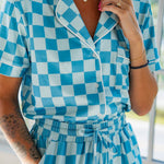This Teal Checker Pajama Shorts Set? Instant mood boost! It’s got all the trendy vibes with its eye-catching teal checker print, and it’s softer than a cloud for those ultimate lazy-day feels. Whether your customers are napping, snacking, or having a tv binge, this set is the ideal partner-in-cozy-crime. Perfect for stylish homebodies who want to keep it cute while staying comfy. Trust us, this set will be their new favorite – stock up because it’s a must-have!