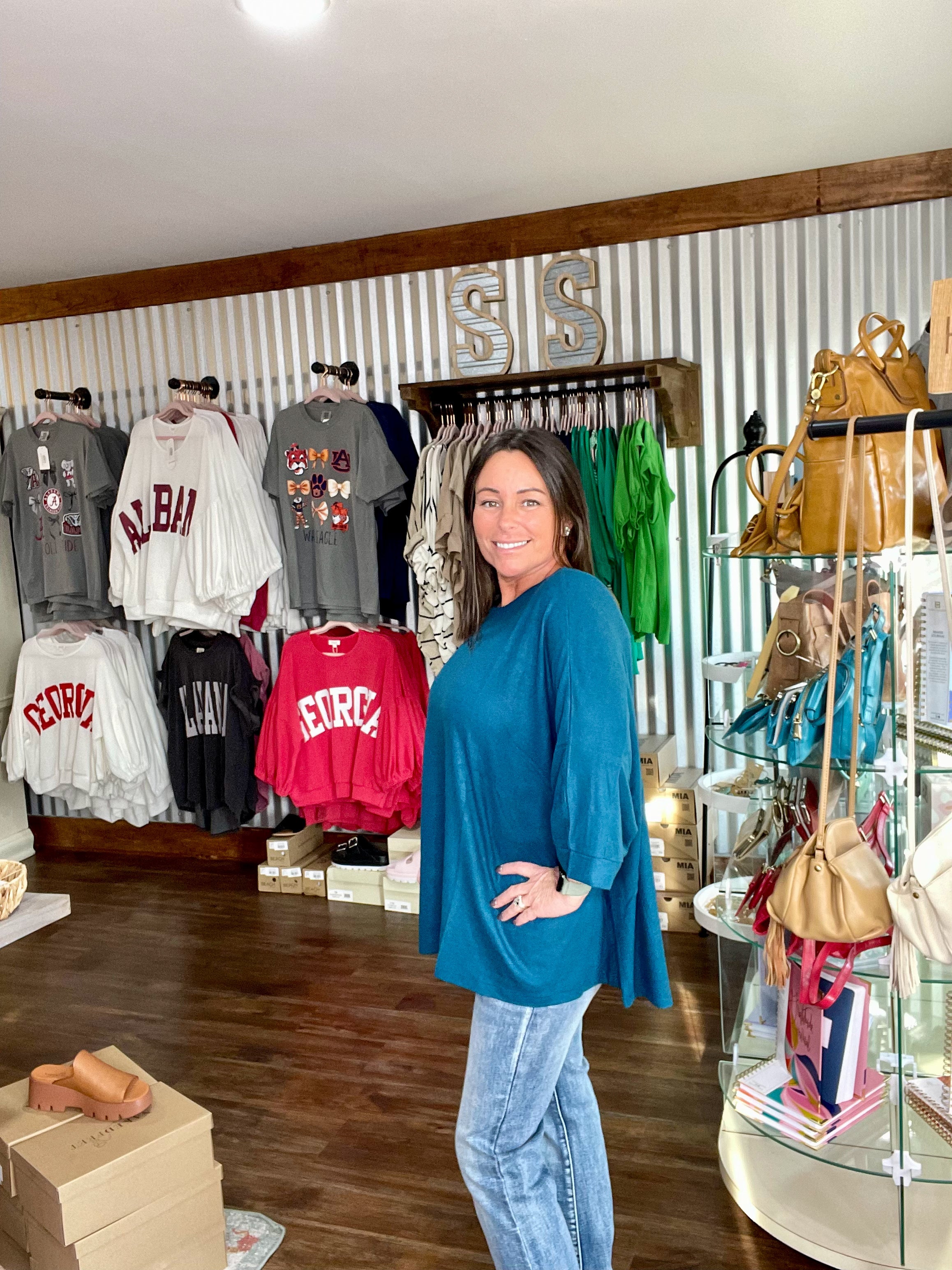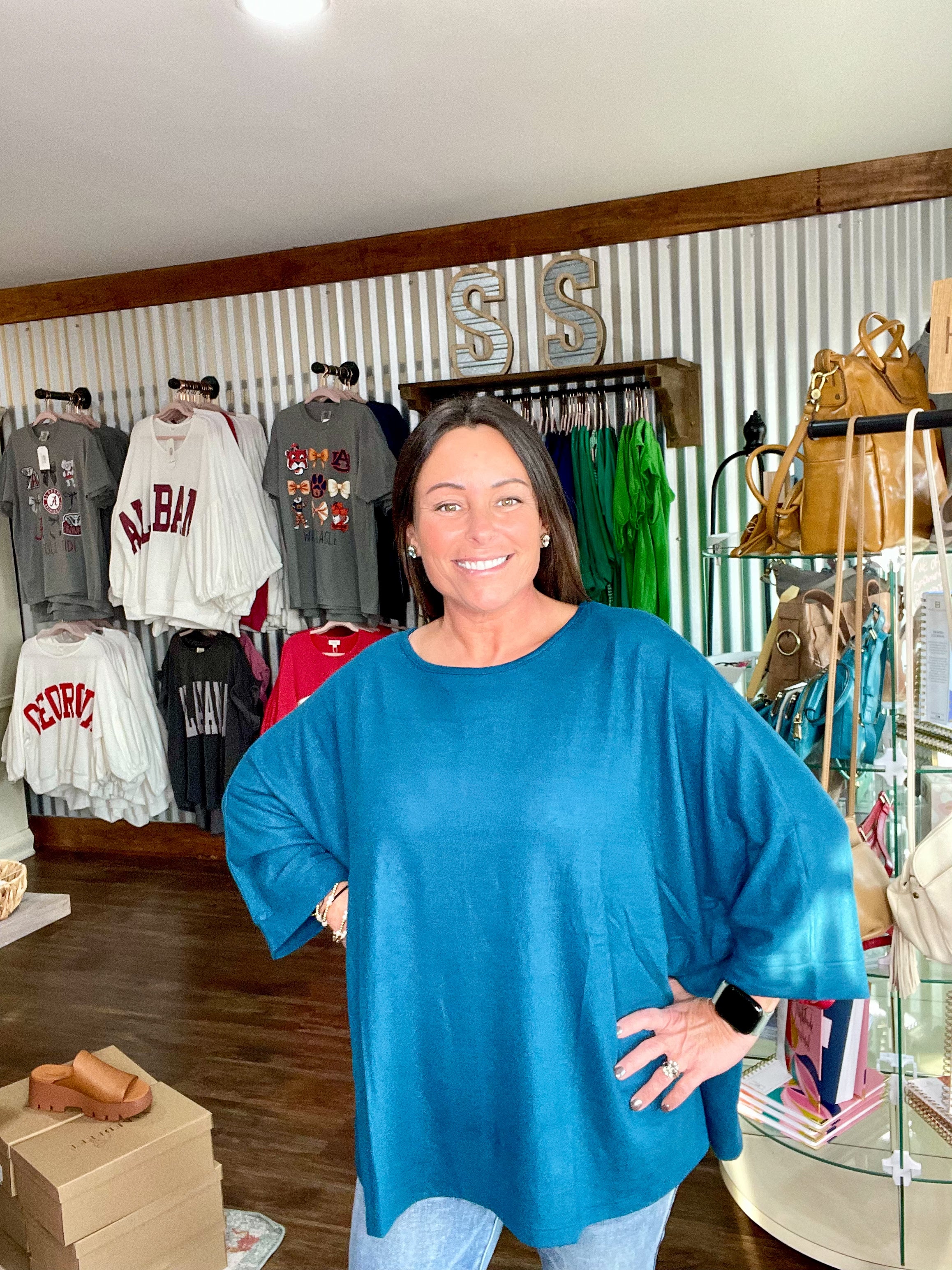 Meet your new favorite fall essential, the Teal Dream Dolman Top. This super cute and flowy knit top features stylish 3/4 length dolman sleeves, offering a relaxed yet chic look. Made from a soft blend of 60% Rayon, 35% Polyester, and 5% Spandex, this top drapes beautifully and feels as good as it looks. The warm chestnut hue is perfect for the season, while the slightly oversized fit provides ultimate comfort with a touch of effortless style. Available in sizes Small through Large, you can even size down for a more fitted look. Whether you're layering it under a jacket or pairing it with your favorite jeans, the Teal Dream Dolman Top is a versatile piece you'll reach for again and again.