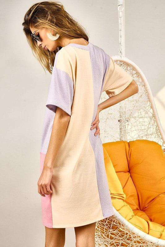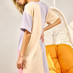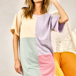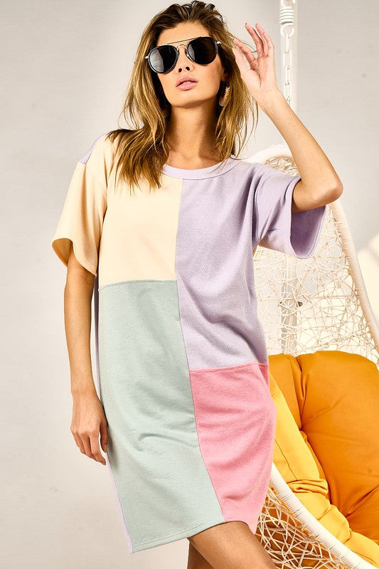 Looking for a dress that's comfortable, stylish, and uniquely designed? Look no further than TerryChic Dresses, where our french terry color block dress is the perfect choice for any occasion! With a flattering fit and eye-catching color combination. Available in sizes Small-XL
