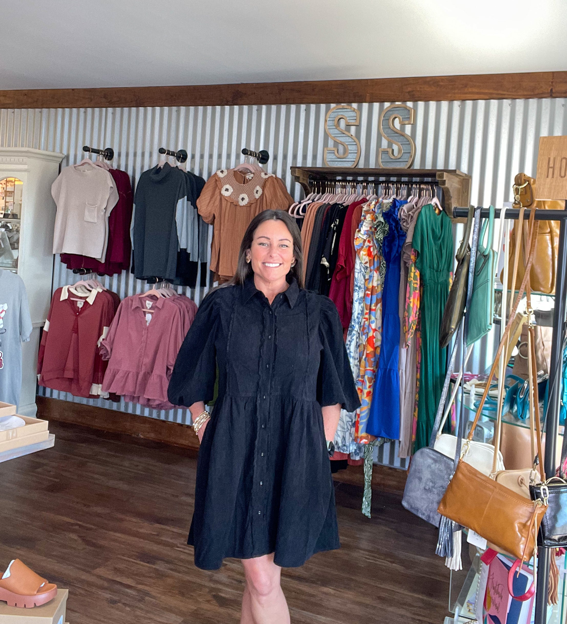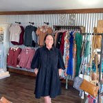 Elevate your wardrobe with our Black Washed Corduroy Dress! This versatile dress features 3/4 length sleeves with elastic bands, side pockets, and a button-down design for easy wear. Crafted from soft, comfy corduroy, it's perfect for any occasion. Available in sizes Small-XL.