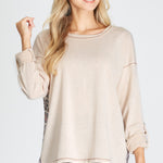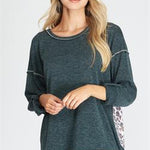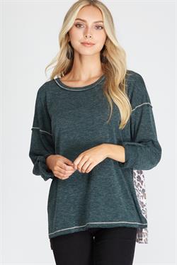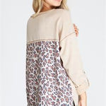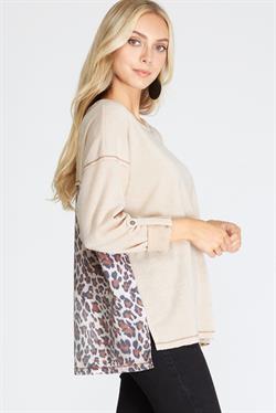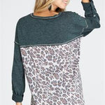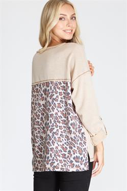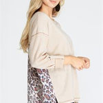This Wild Prints Top features a long sleeve design and back animal print contrast detail for a stylish and unique look. The knit material makes it comfortable to wear while providing a touch of warmth. Perfect for everyday wear. Available in oatmeal and teal.