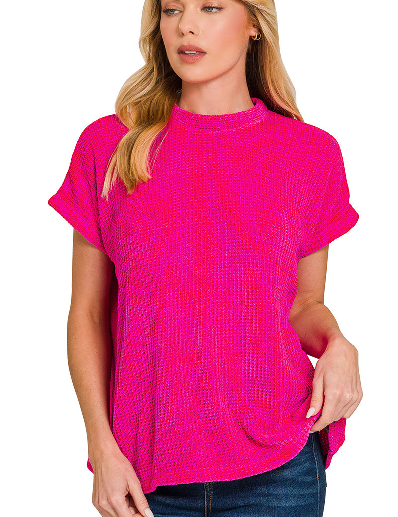 Hot Pink Chenille Waffle Cap Sleeve Sweater