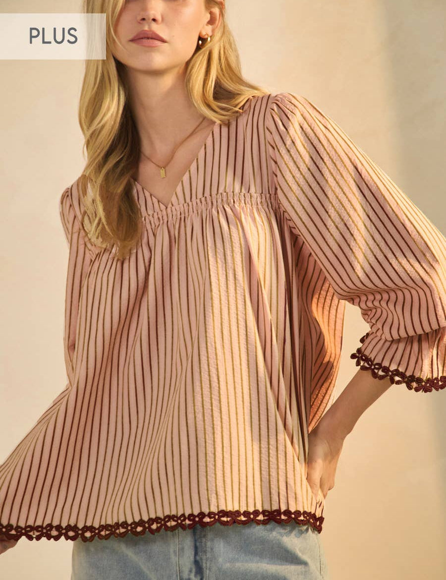 Curvy Tulip Trim Puff Sleeve Blouse – Peach Multi
