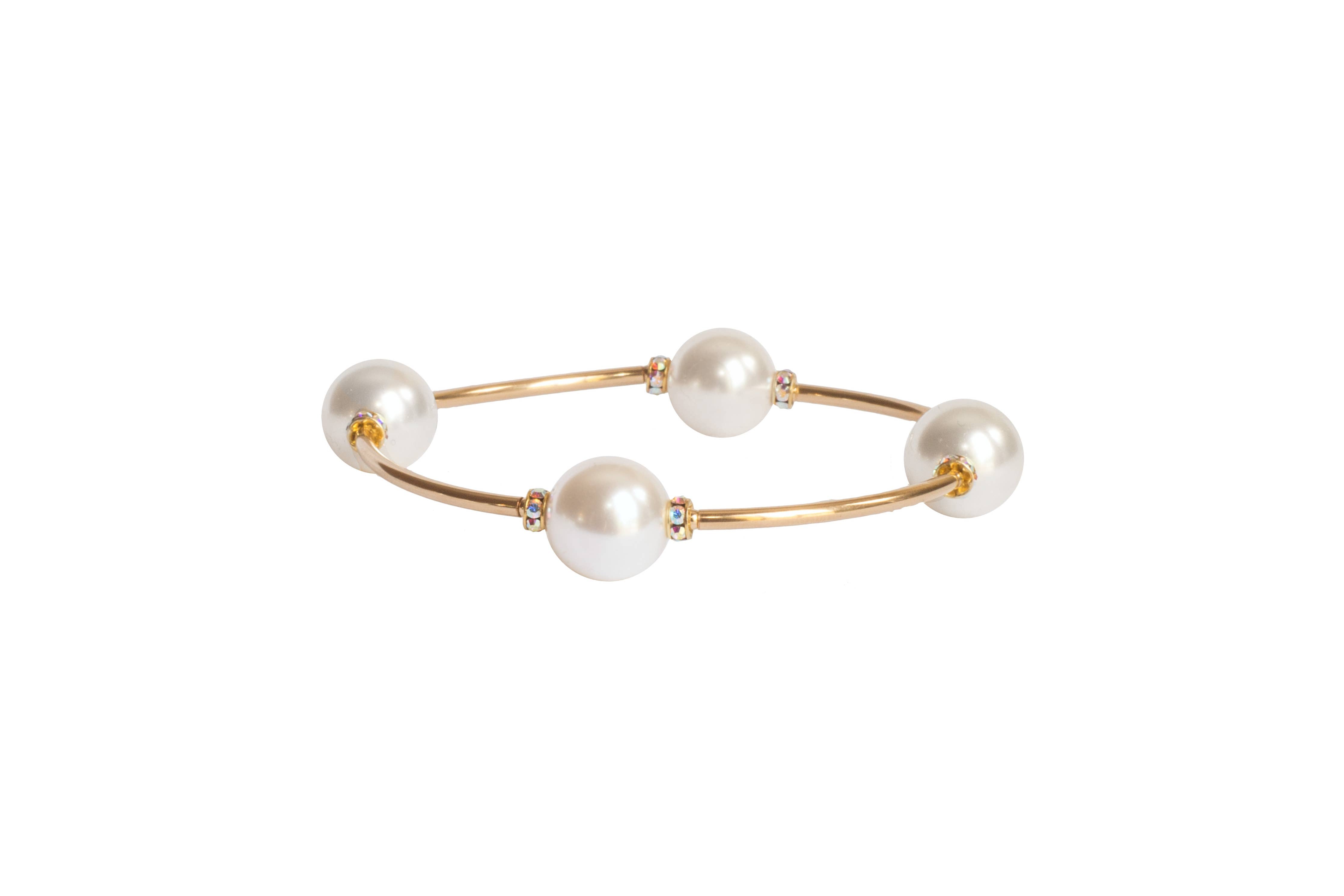12mm Crystal White Pearl Blessing Bracelet with Gold Links: L