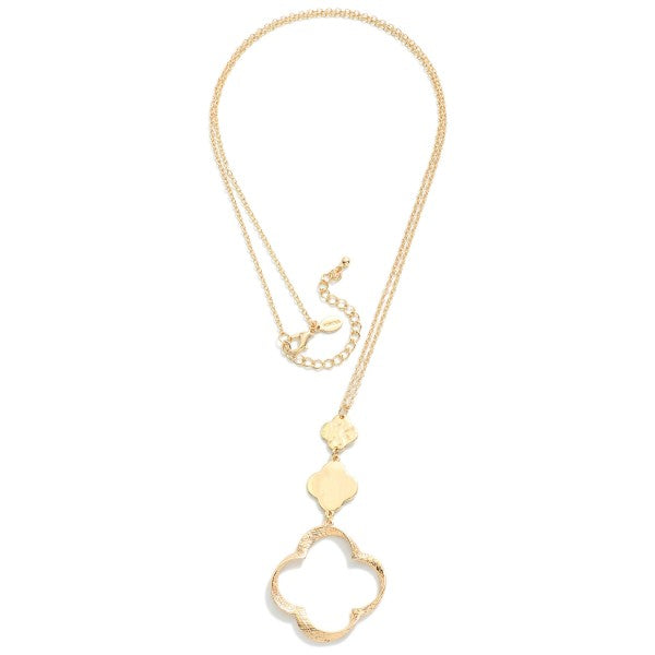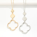 Long Chain Link Necklace Featuring Linked Clovers Pendant