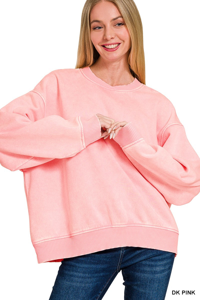 Acid Wash Oversized Fleece Pullover – Dark Pink