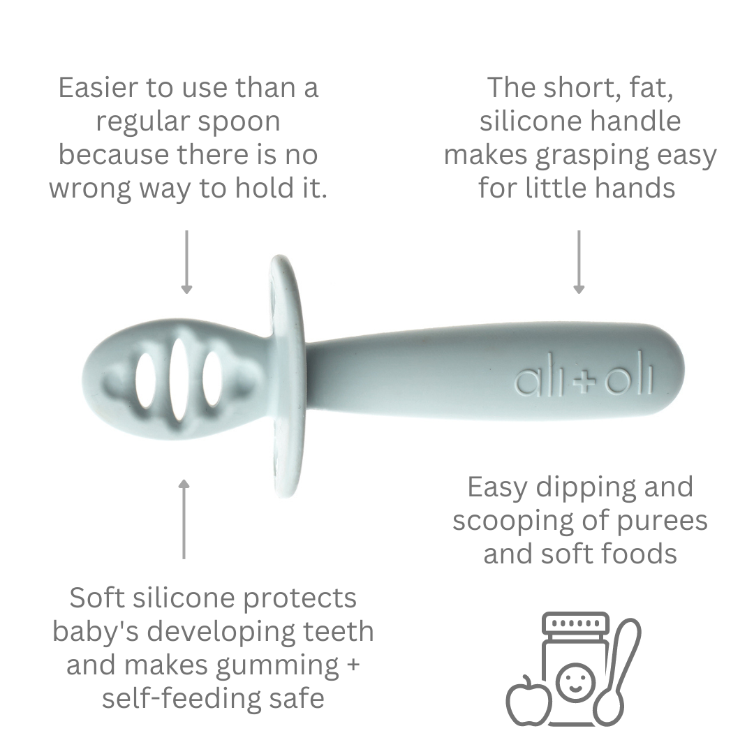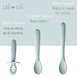 Help your little one confidently begin their self-feeding journey with our Ali+Oli Multi-Stage Spoon Set. Designed for every stage of feeding, this 3-piece set includes a Pre-Spoon, Stage 1 Spoon, and a Mom Spoon—each made from 100% BPA-Free, food-grade silicone that’s gentle on sensitive gums.