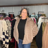 Chic Comfort Faux Fur Zip-Up Jacket (Brown)