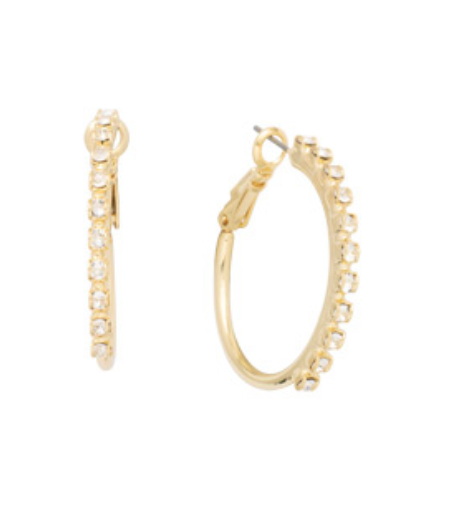 The Trya Hoop Earrings feature a row of crystals on a classic metal hoop.