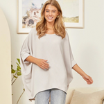 Elevate your wardrobe with our Curvy Chic Comfort Top! Made with soft curly rib and a poncho-shaped body, this knit top offers both comfort and style. Its relaxed fit allows for effortless movement and a laid-back look. Stretchy and non-sheer, it's a must-have for any fashion-forward individual.