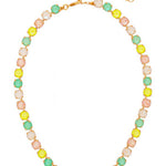 The Matilda Tennis Necklace features a repeating line of round cut crystals on an adjustable chain, secured with a lobster claw clasp. (16-20 inches)