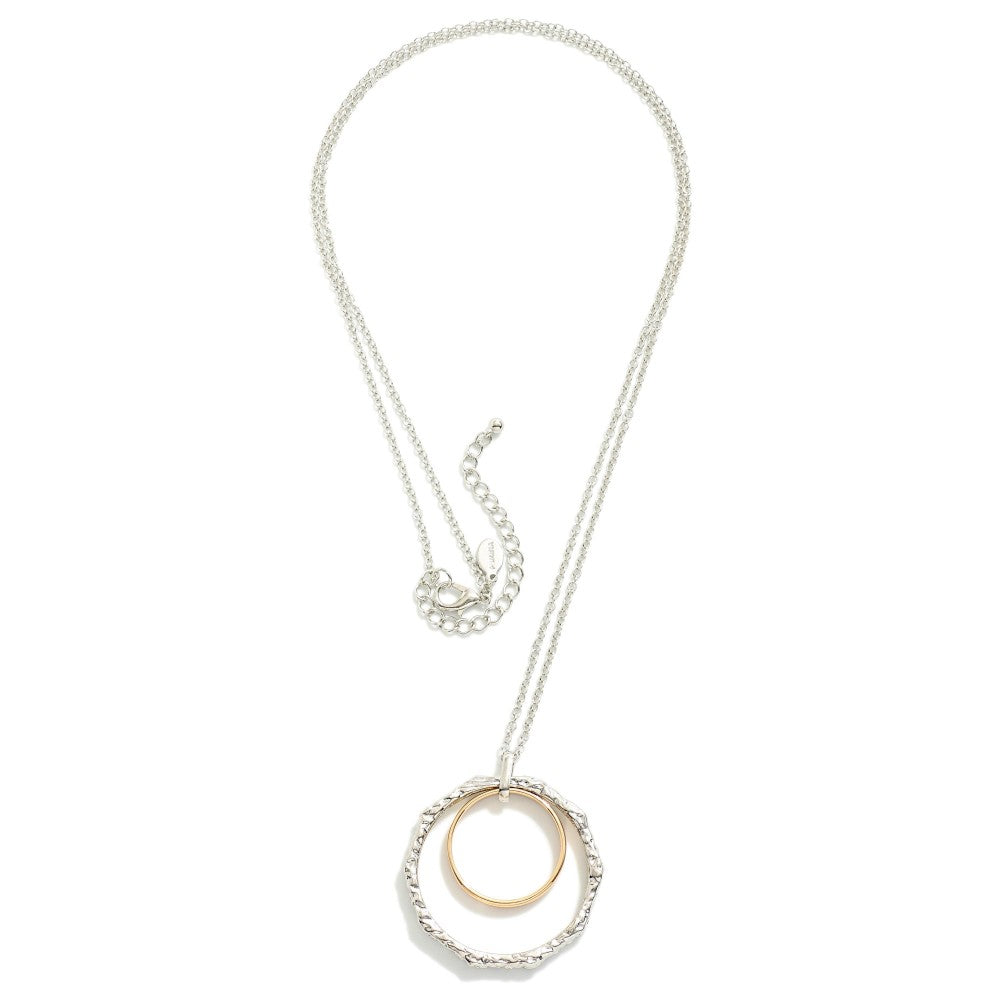 Metal Tone Chain Link Necklace Featuring Textured Metal Nesting Hoop Pendant