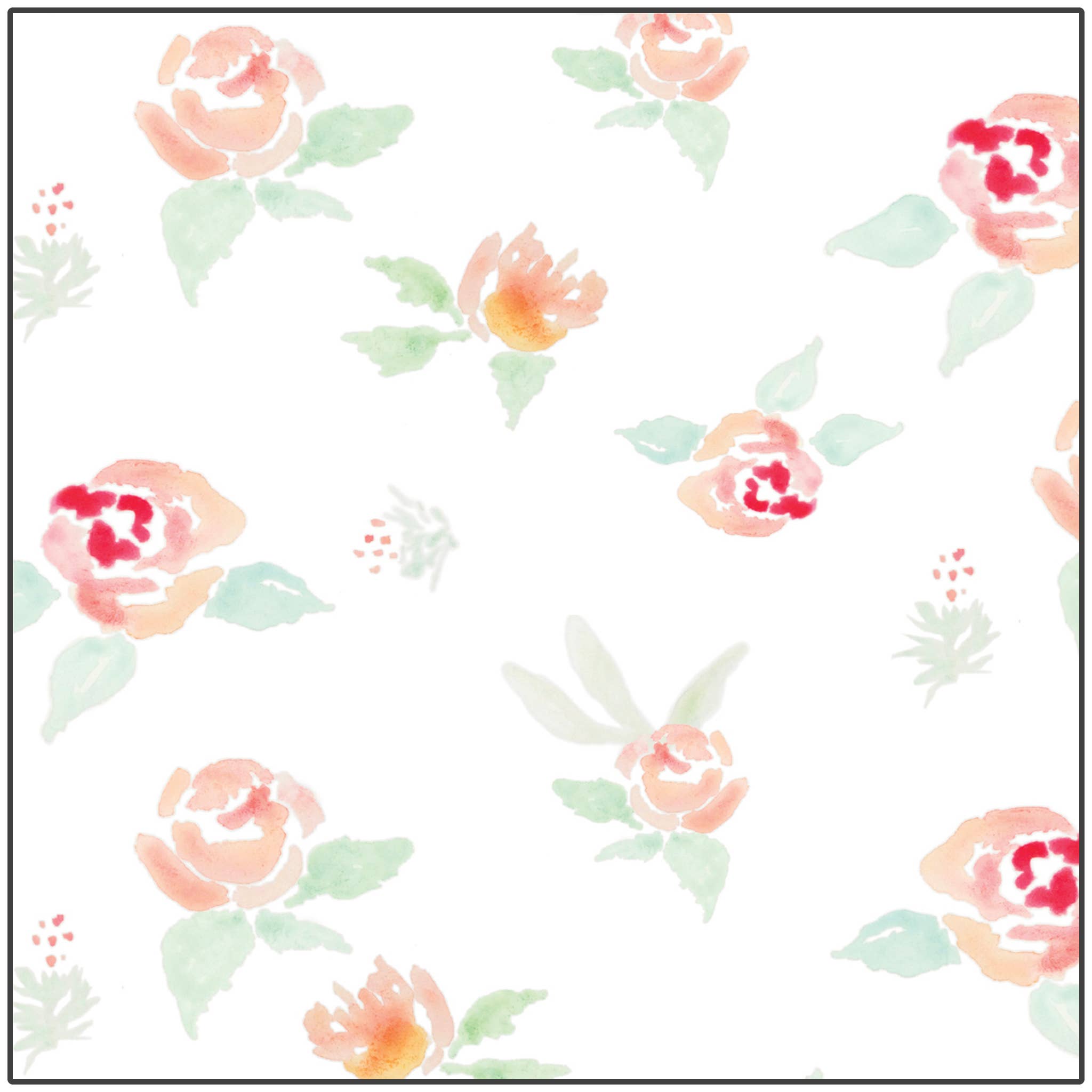 I created this sweet and feminine watercolor print with a warm hued collection of flowers from my garden as a source of inspiration. It was a delight to paint, and it coordinates so beautifully with the Peach Blush and Jadeite colors in our Earthtone collection.