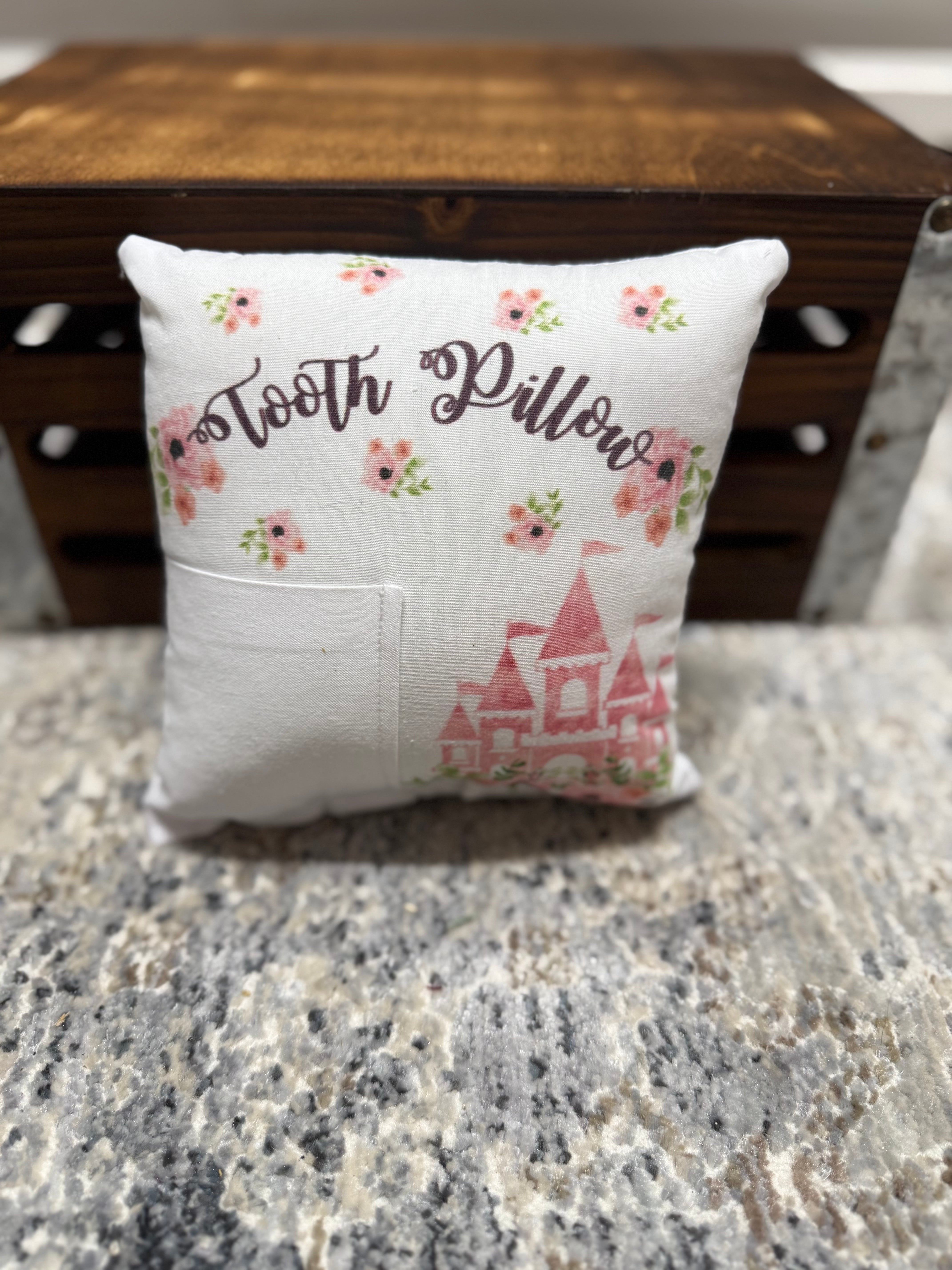 Make every Tooth Fairy visit feel magical with our Princess Castle Tooth Fairy Pillow. Featuring dainty floral accents, a soft white background, and a charming pink castle, this sweet keepsake adds fairy tale fun to bedtime.
