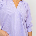 This stylish ruffle top by Karlie is perfect for any occasion. Its purple stripe, short sleeve design is available in sizes small-large, offering a flattering fit for every silhouette. Look your best with this timeless piece.
