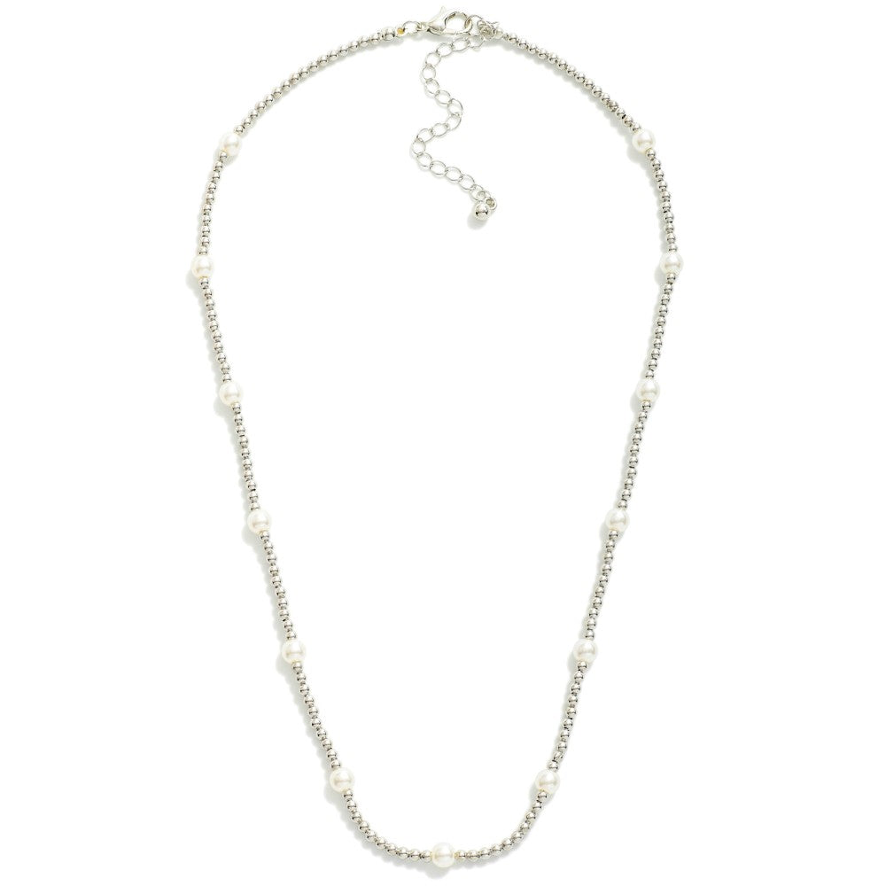 Metal Tone Beaded Necklace Featuring Pearl Accents
