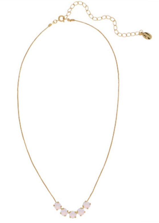 The Shaughna Tennis Necklace features five crystals on a delicate adjustable chain