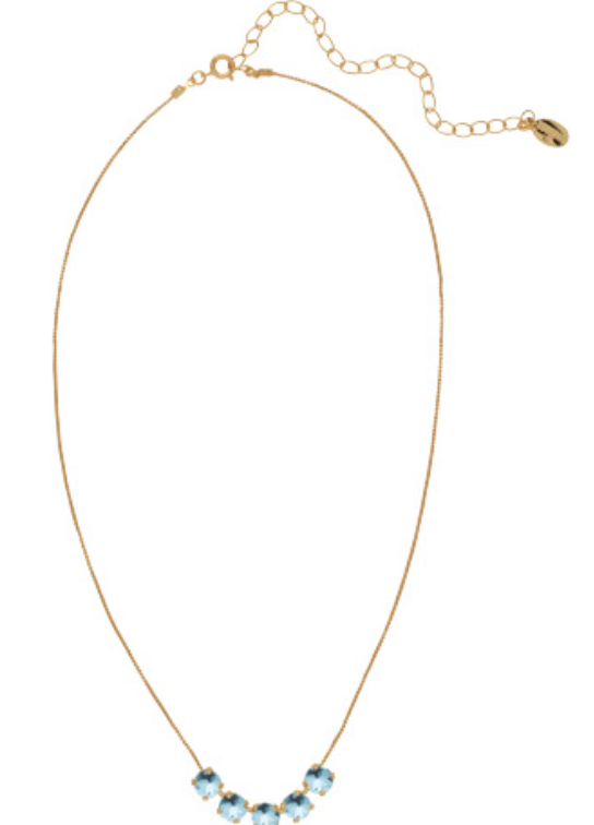 The Shaughna Tennis Necklace features five crystals on a delicate adjustable chain