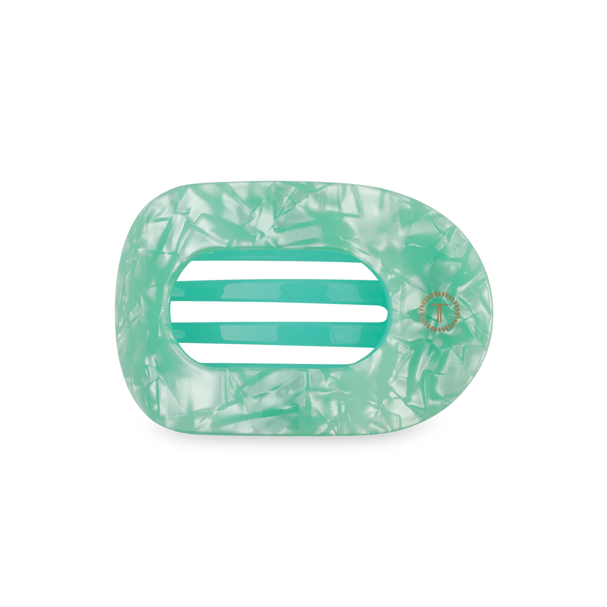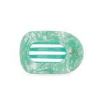 Lay flat and relax with the new TELETIES Spring Splash Medium Flat Round Hair Clip in Green. This hair clip is designed to allow you to lay back flat, do yoga, or sit comfortably in a seat with a headrest, and it is made with the same material that is nearly unbreakable.