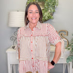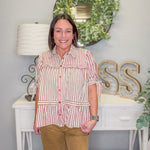 Stripe Tiered Button-Up Blouse – Mocha Burgundy Cream