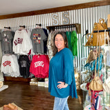 Meet your new favorite fall essential, the Teal Dream Dolman Top. This super cute and flowy knit top features stylish 3/4 length dolman sleeves, offering a relaxed yet chic look. Made from a soft blend of 60% Rayon, 35% Polyester, and 5% Spandex, this top drapes beautifully and feels as good as it looks. The warm chestnut hue is perfect for the season, while the slightly oversized fit provides ultimate comfort with a touch of effortless style. Available in sizes Small through Large, you can even size down for a more fitted look. Whether you're layering it under a jacket or pairing it with your favorite jeans, the Teal Dream Dolman Top is a versatile piece you'll reach for again and again.