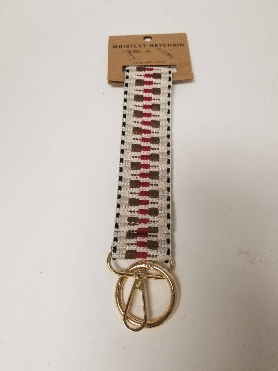 Never lose your keys again with the Wristband Keychain in Beige Burgundy. Featuring a striking zig-zag pattern, this stylish wristband adds a pop of color to your outfit while keeping your keys secure and within easy reach. Its comfortable 6.5" x 1.5" strap fits perfectly around your wrist, and the detachable keychain ring offers convenient versatility. Combine fashion and function effortlessly with this bold accessory you’ll love to wear every day.