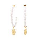 Tiger Pearl Hoop Earrings White/Gold 1.5"