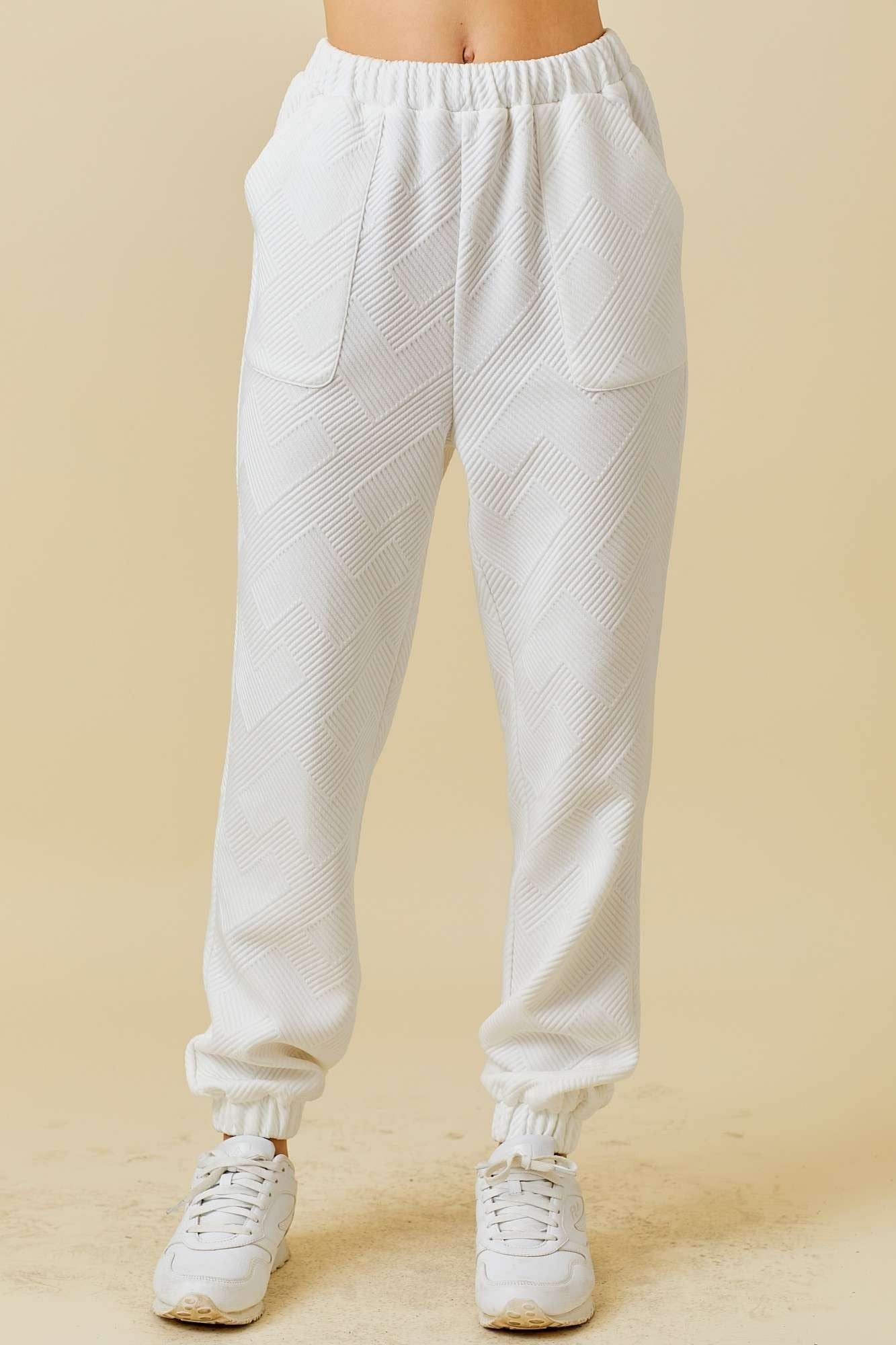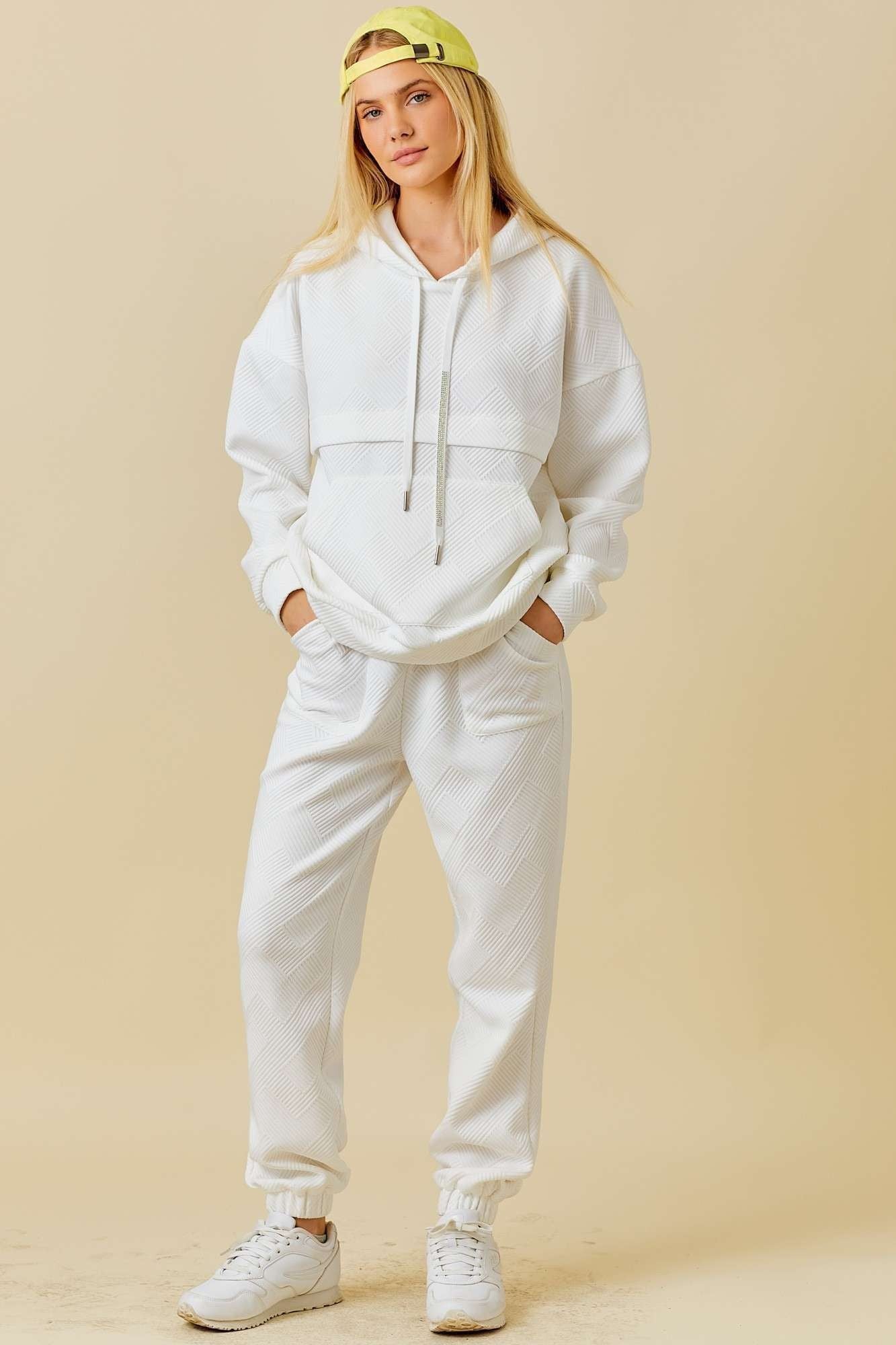 Indulge in luxurious comfort with our White Textured Knit Set! This matching hoodie jacket and joggers feature a soft, cozy texture and elegant rhinestone trim on the drawstrings. Dress it up or down, in sizes Small-Large with a true to size fit. Upgrade your loungewear game with this versatile and stylish set!