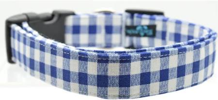 Add a touch of classic charm to your pup’s look with this blue gingham dog collar. Made from durable cotton fabric with an interior stabilizer, it’s folded and sewn to create eight layers of strength. The curved side-release buckle ensures comfort, while the nickel-plated D-ring provides a secure spot for tags or a leash.