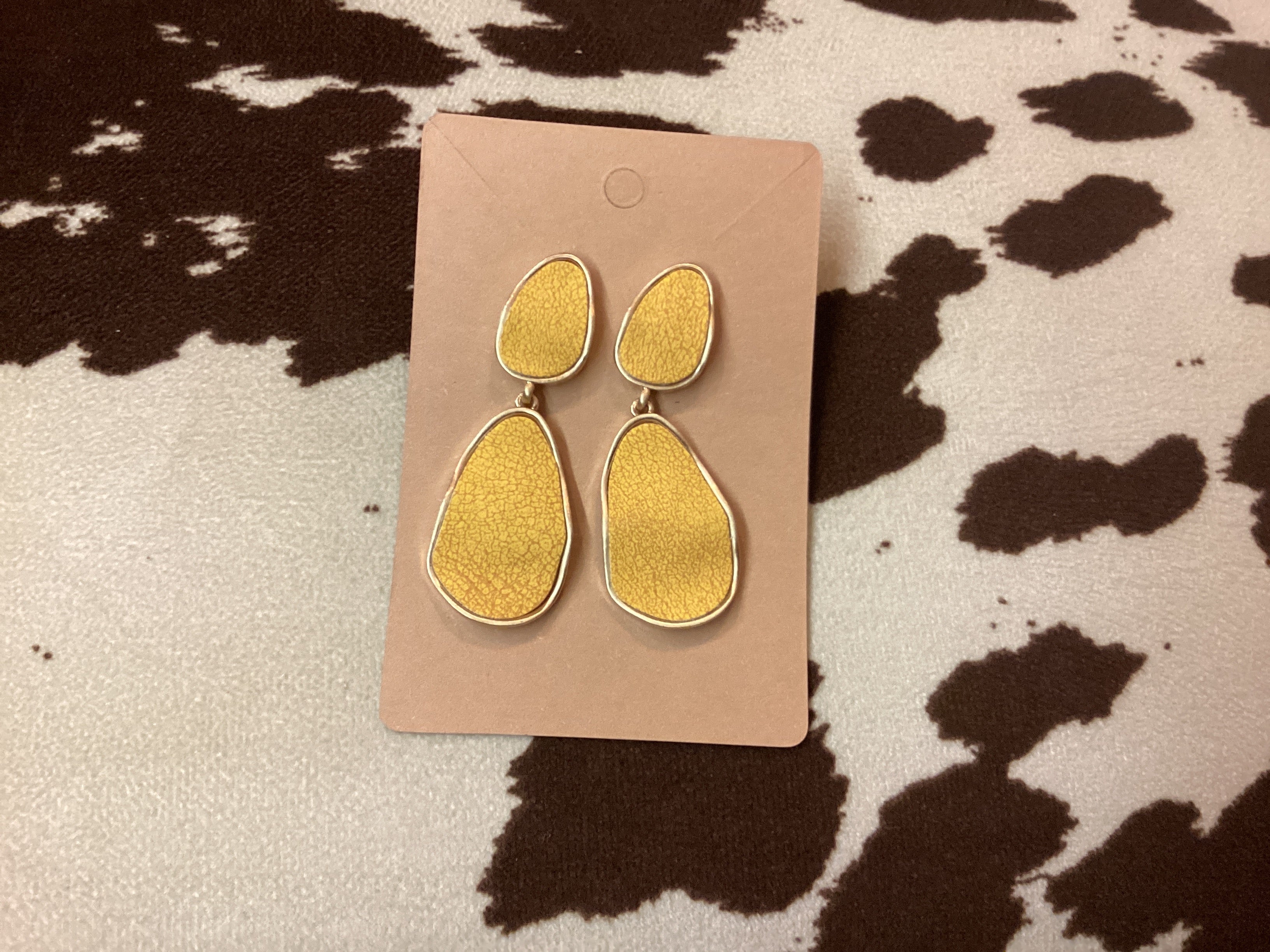 Linked Metal Geometric Shape Drop Earrings With Cracked Vegan Leather Detail